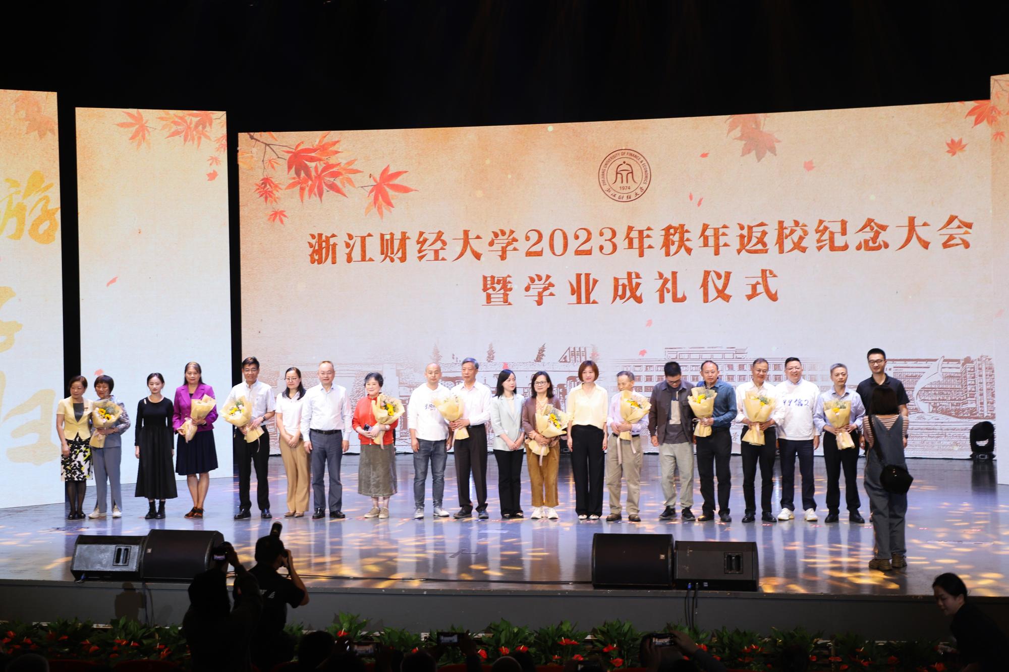上午,各秩年返校班级参加了在普华大剧院举办的秩年返校纪念大会暨学业成礼仪式。颁奖典礼中,我院1993届校友金一鸣和王志刚、2000届校友袁霞、2002届校友侯展获得“最美浙财人”桃李奖章;1993届校友林耀、2003届校友虞丹丹所在企业获得“浙财氏家”校友企业称号,各届返校班级代表依次“向母校报到”。