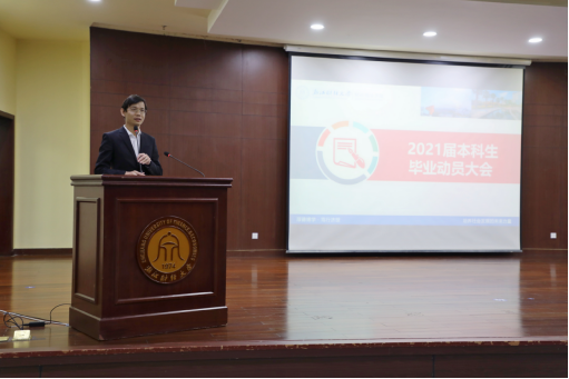 本网讯 2020年10月28日上午8点30分,我院2021届毕业生动员大会在学术中心第一报告厅举行。我院教学副院长童光辉、教师代表叶宁、学生办主任李永涛、教学办主任吕涛出席,教学秘书方梦澜主持,全体2021届毕业生参加了此次动员大会。