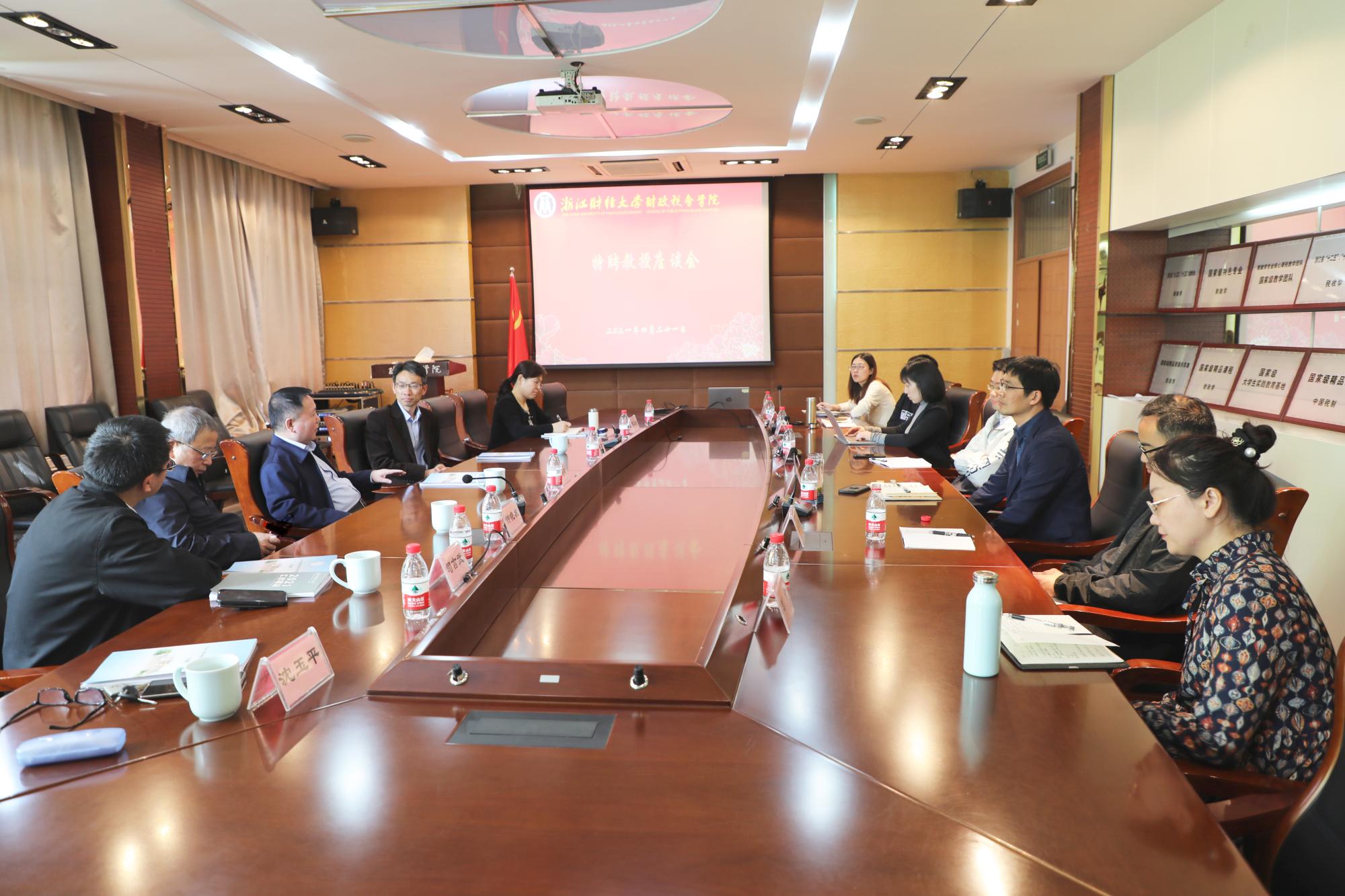 4月21日,我校特聘教授、中南财经政法大学校长杨灿明教授来我院座谈交流。校长钟晓敏、副校长李永友以及学院领导和学院教师代表参加此次座谈。座谈会由院长司言武主持。