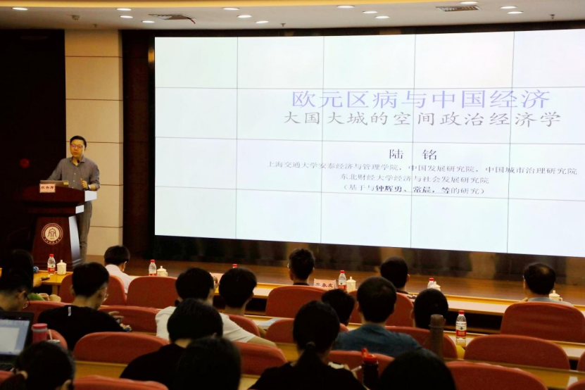 6月10日,上海交通大学安泰经济与管理学院特聘教授、国家领军人才陆铭应邀来我院作题为“欧元区病与中国经济”的学术报告。报告由副校长李永友主持。