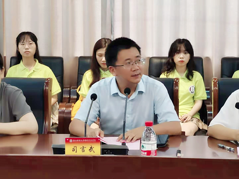 学院院长司言武发表讲话,他详细介绍了学校历史沿革、办学特色、师资队伍建设情况,以及近年来学校在人才培养、教学科研、平台建设、校地融合等方面取得的成绩,并勉励新生勇于创新、不懈奋斗,为将来打下坚实的基础。