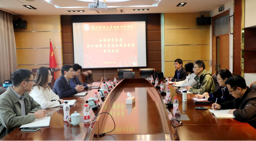 11月19日,西湖投资集团党委副书记张康平一行来我院洽谈合作事宜。我院党委书记童玉玲、李永友教授、副院长高琳、副书记徐丽玲、税务系主任张帆参加洽谈。
