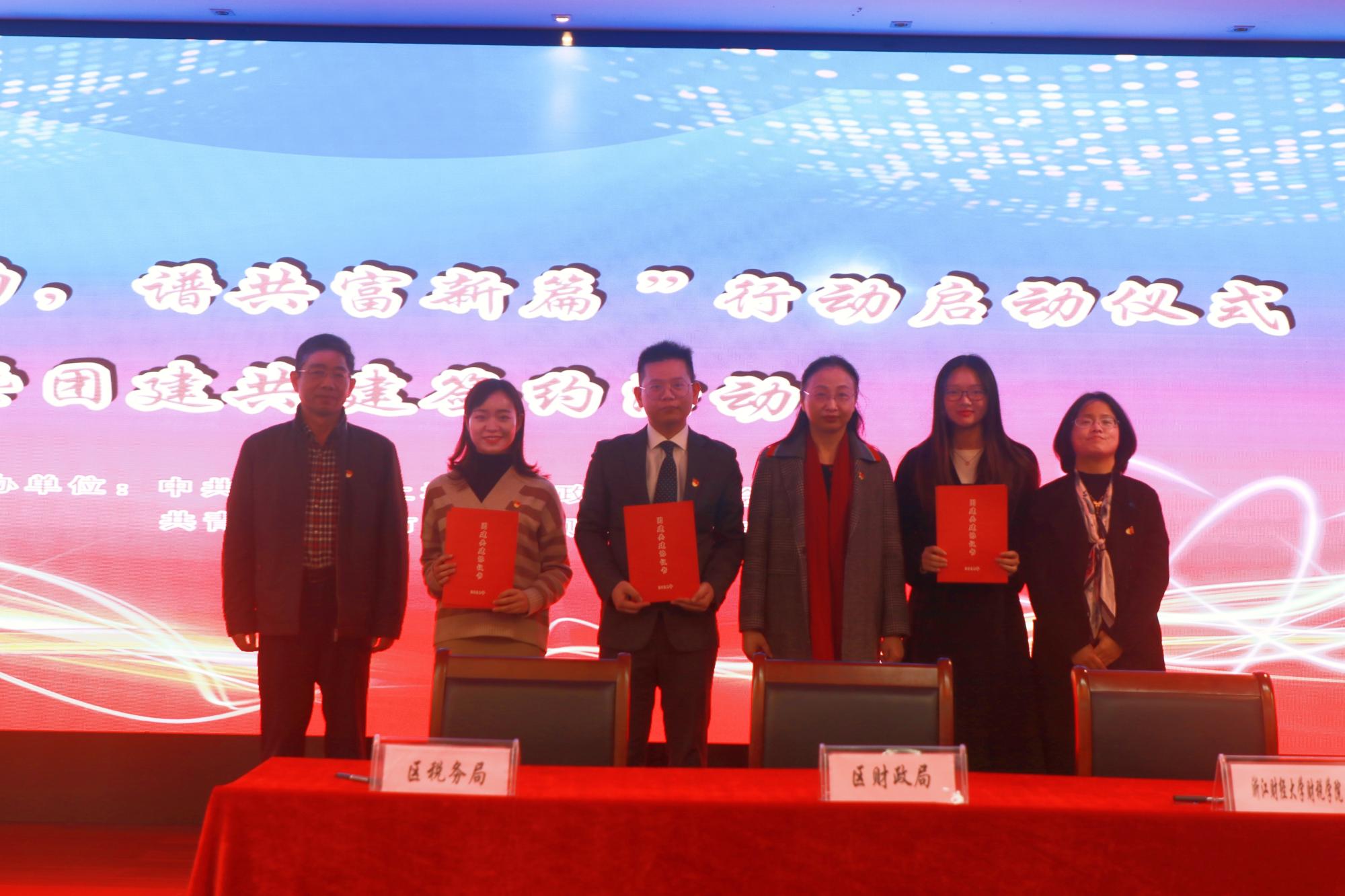 11月30日,1946伟德国际源自英国团委与上城区财政局团委、上城区税务局团总支举行团建共建签约仪式。上城区财政局党委书记、局长石荣祥,团区委书记赵丹晨,杭州团市委基层工作部副部长郑宏,市财政局团委副书记张斌豪,上城区财政局党委副书记、副局长、行业党委书记潘丽华,上城区税务局二级高级主办郑利民,学院党委副书记徐丽玲及三方团组织负责人等出席了仪式。