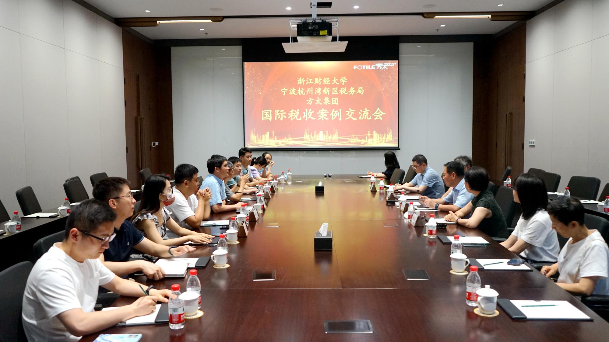 6月18日下午,伟德国际victor1946税务系和宁波杭州湾新区税务局在方太集团总部召开国际税收案例交流会,国际税收管理处处长钱正平和税务系教职工代表10余人参加会议。