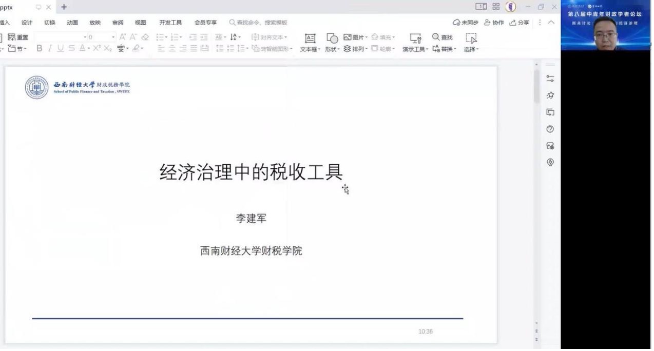 李建军教授的发言题目是“经济治理中的税收工具”。他指出,税收是经济治理的基础和重要支柱,征税能力和方式关乎国家兴衰,需建立以适度税负为基础的良好税制,完善实体性税收工具、征管性税收工具和体制性税收工具,以良税实现善治。